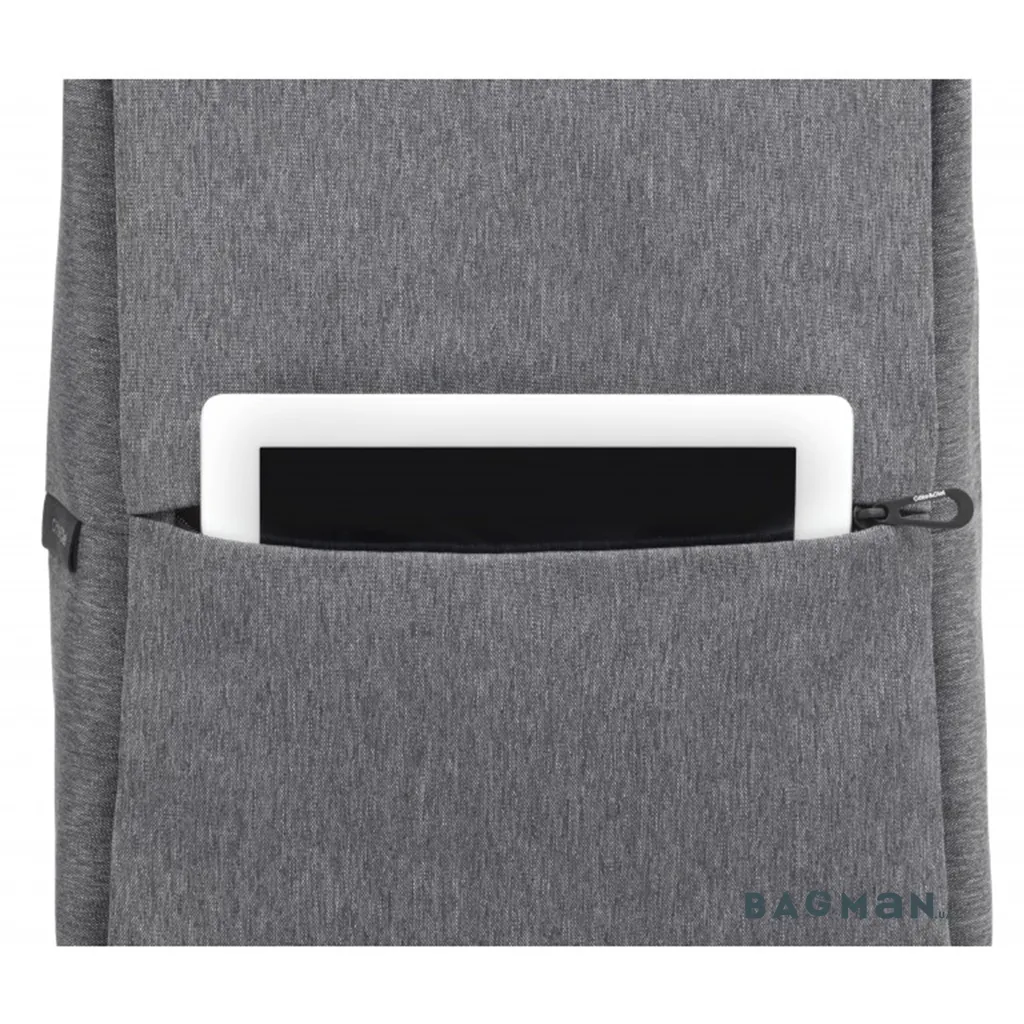 Спеціальний відсік з цупкою підкладкою всередині основного відділення призначений для ноутбука з діагоналлю до 15". У зовнішньому відділенні з потаємною блискавкою також є два додаткових відсіки для айпаду та айфона. Бічне приховане відділення можете використовувати для зберігання невеликих речей або книг.