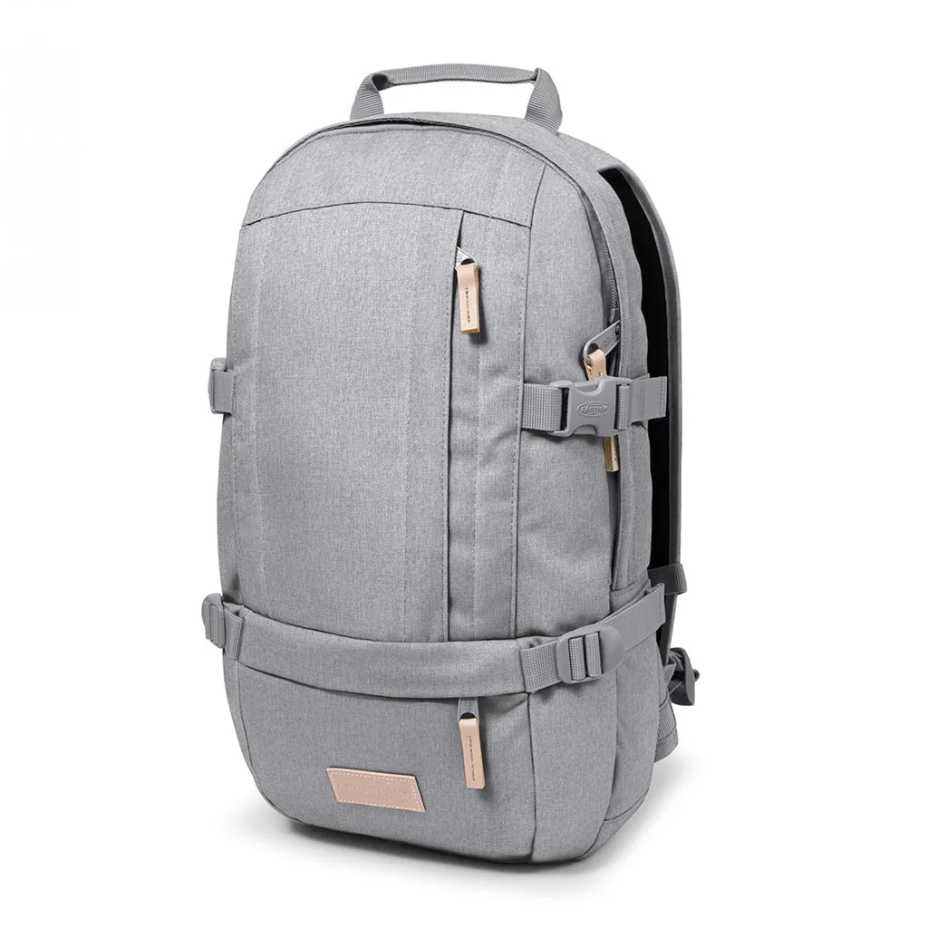 Floid Sunday Grey — лаконічний міський рюкзак у формі кокона. Його форма підтримується бічними стяжками, які розташовані на двох рівнях і защипуються пластиковими фастексами. Виріб створений з поліамідної тканини світлого сірого кольору і доповнений шкіряними елементами.