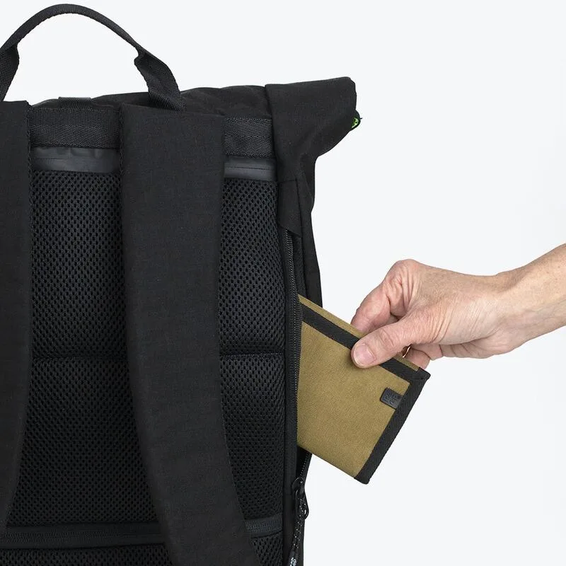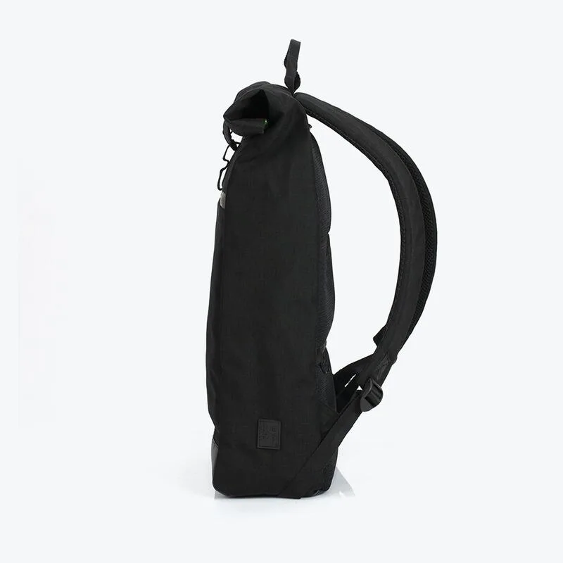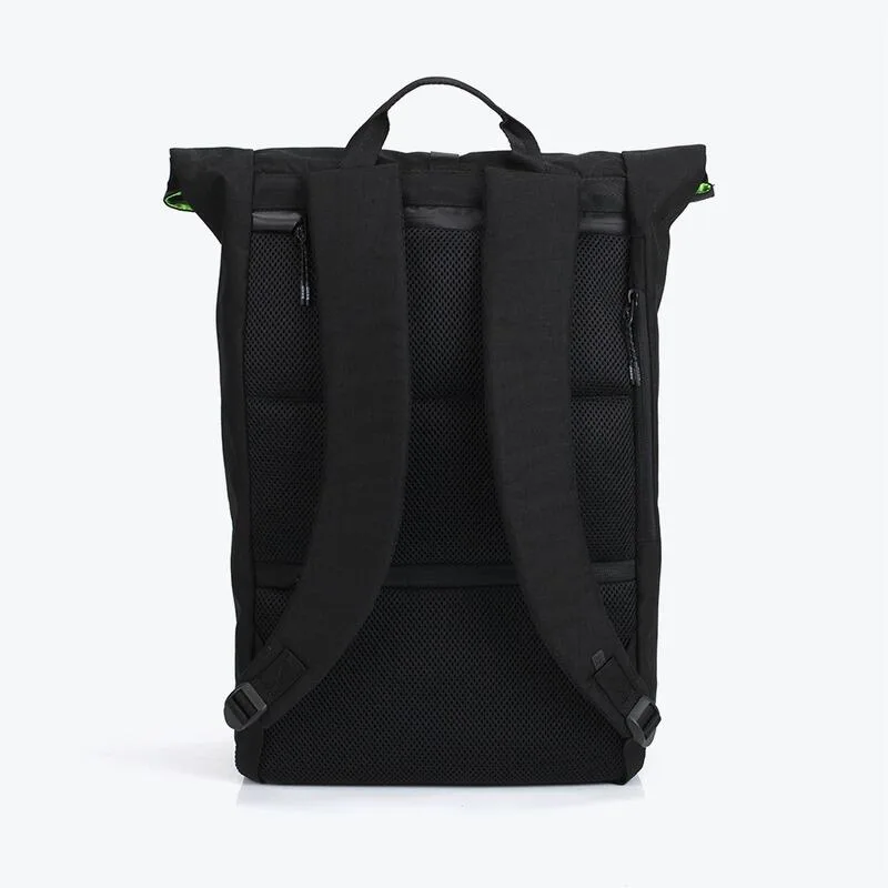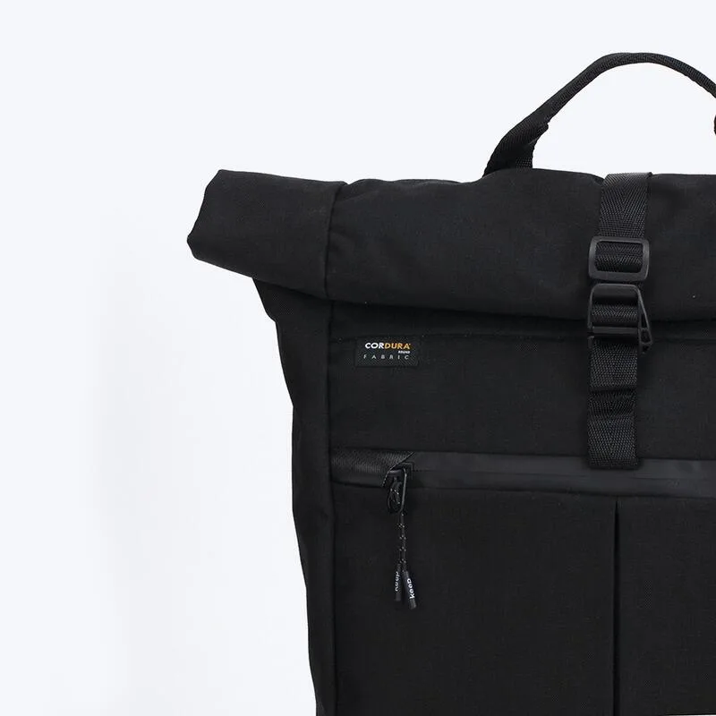 Roll-top рюкзак має містке відділення для основного вмісту. Щоб закрити рюкзак, потрібно згорнути верх відділення і застібнути ремінець з карабіном. Всередині є кілька кишень із застібками і без. Спереду передбачений відділ для невеликих предметів. Для 13-дюймового ноутбука є спеціальний відсік на спинці. Там же, але трохи нижче знаходиться потаємна кишеня для цінних предметів.