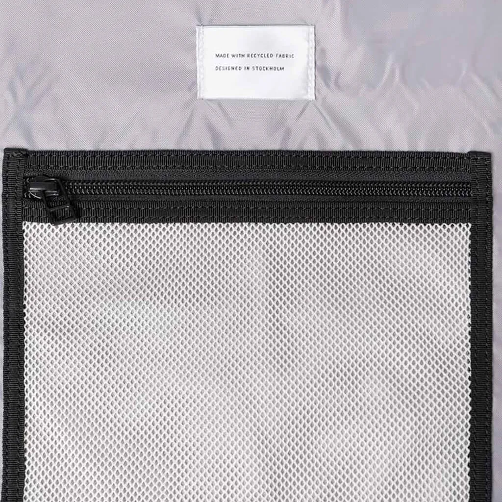 Рюкзак зроблено зі зносостійкого переробленого поліестеру з ТПУ покриттям, яке відштовхує вологу. Спинка покрита вентильованою сітчастою тканиною. Рюкзак оснащений нагрудним ременем і світловідбиваючими елементами.