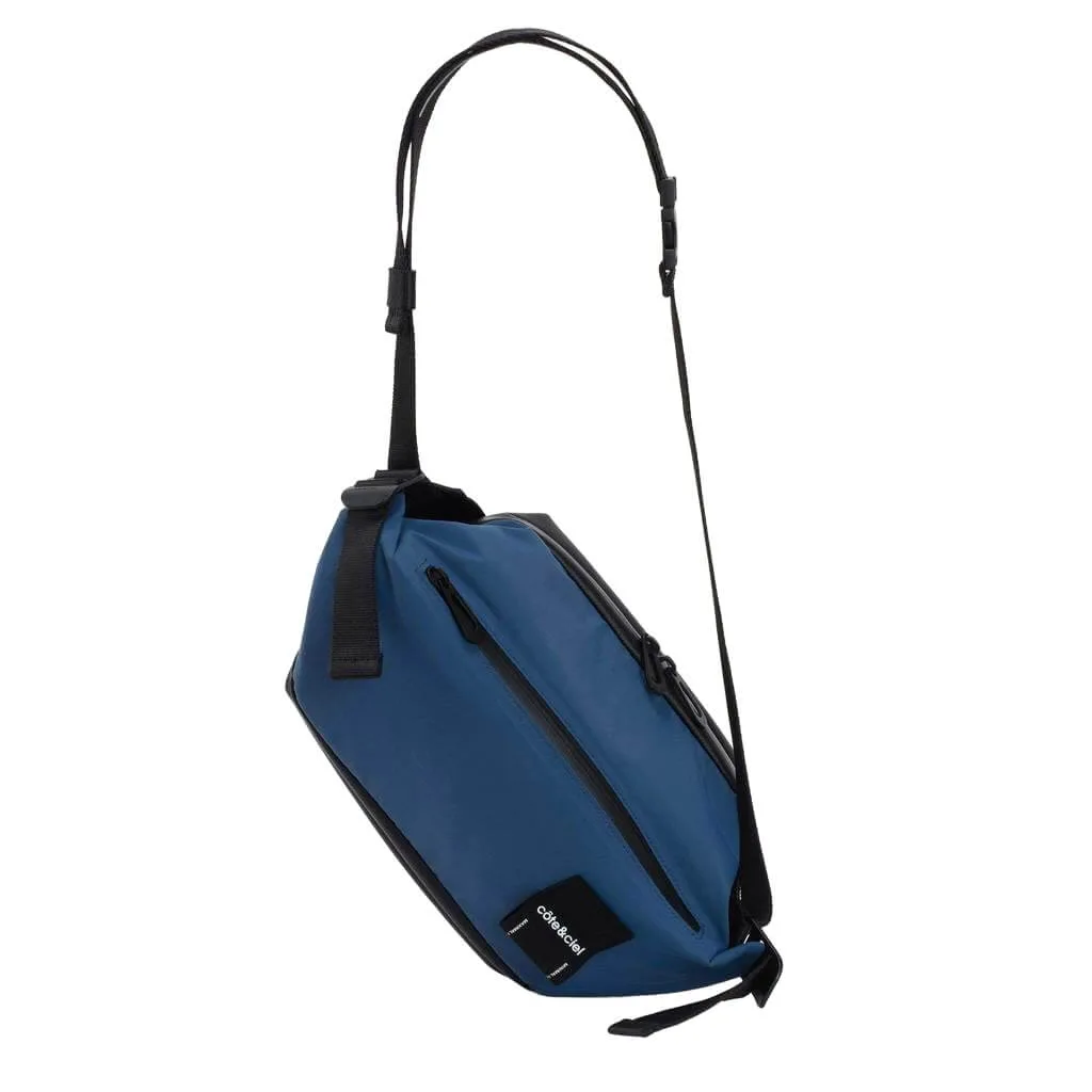 Isarau Small Soft Blue — це практична поясна сумка від бренду côte&ciel. Аксесуар з незвичайною формою місткий і зручний. У ньому помістяться всі необхідні речі, які можуть знадобитися на прогулянці або в подорожі. Поясна сумка забезпечує речам максимальну безпеку і залишає руки вільними.