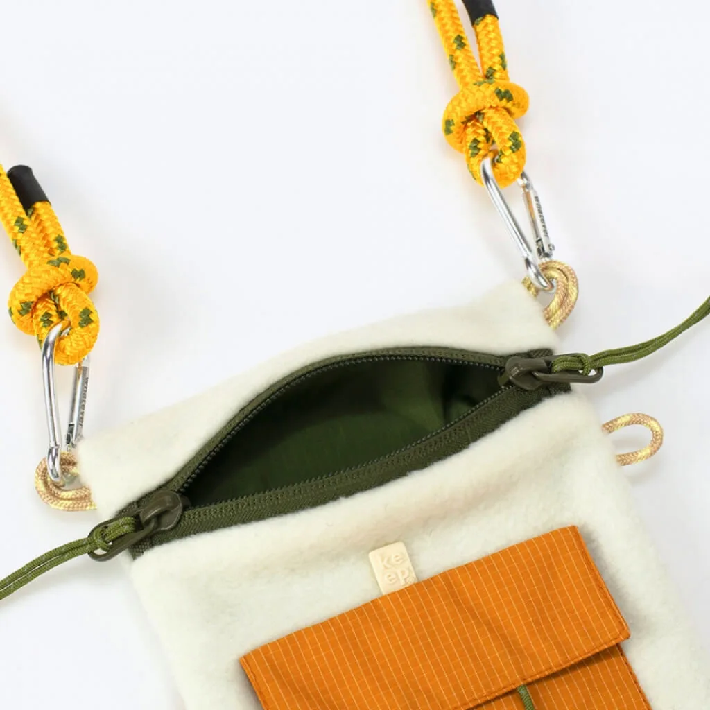 Сумка складається з одного головного відділення, всередині якого є кріплення для ключів. Внутрішня підкладка зроблена з ріпстопу. Застібається сумка двосторонньою блискавкою. Ззаду і спереду є додаткові кишені. У сумку поміститься телефон і документи, готівка та картки, серветки, ключі, а збоку можна прикріпити сонцезахисні окуляри.
