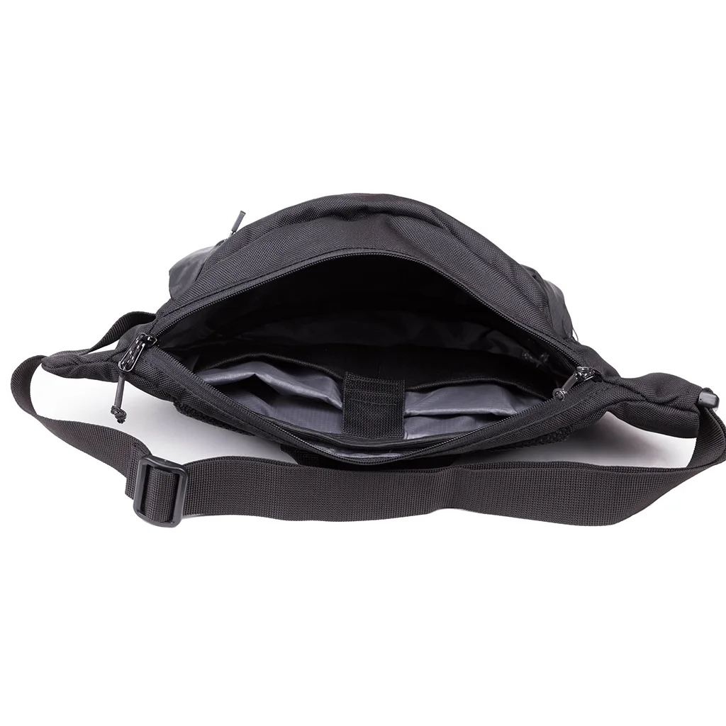 Поясна сумка Big bag має великий об'єм і здатна вмістити велику кількість необхідних предметів, для кожного з яких передбачене своє місце. Сумка зручно сидить на поясі завдяки широкому ременю і регульованій довжині. Ремінь з'єднується фастексом, який вкладається в спеціальну нішу, що захистить від крадіжки.
